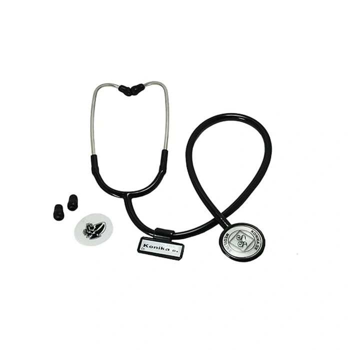 The Konica Stethoscope is a premium medical device engineered for precise auscultation. It generally incorporates a dual-head configuration, consisting of both a diaphragm and a bell, allowing for the detection of various sound frequencies. The chest piece is made from robust materials to improve sound clarity and minimize background noise. Additionally, it features adjustable binaural ear tubes to ensure a comfortable fit and superior acoustic efficiency. The flexible tubing facilitates easy maneuverability and positioning. This stethoscope is perfect for healthcare practitioners, delivering dependable performance for the assessment and monitoring of patient health.